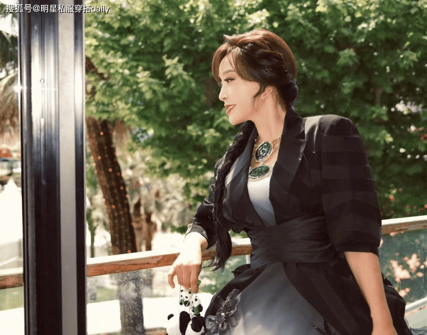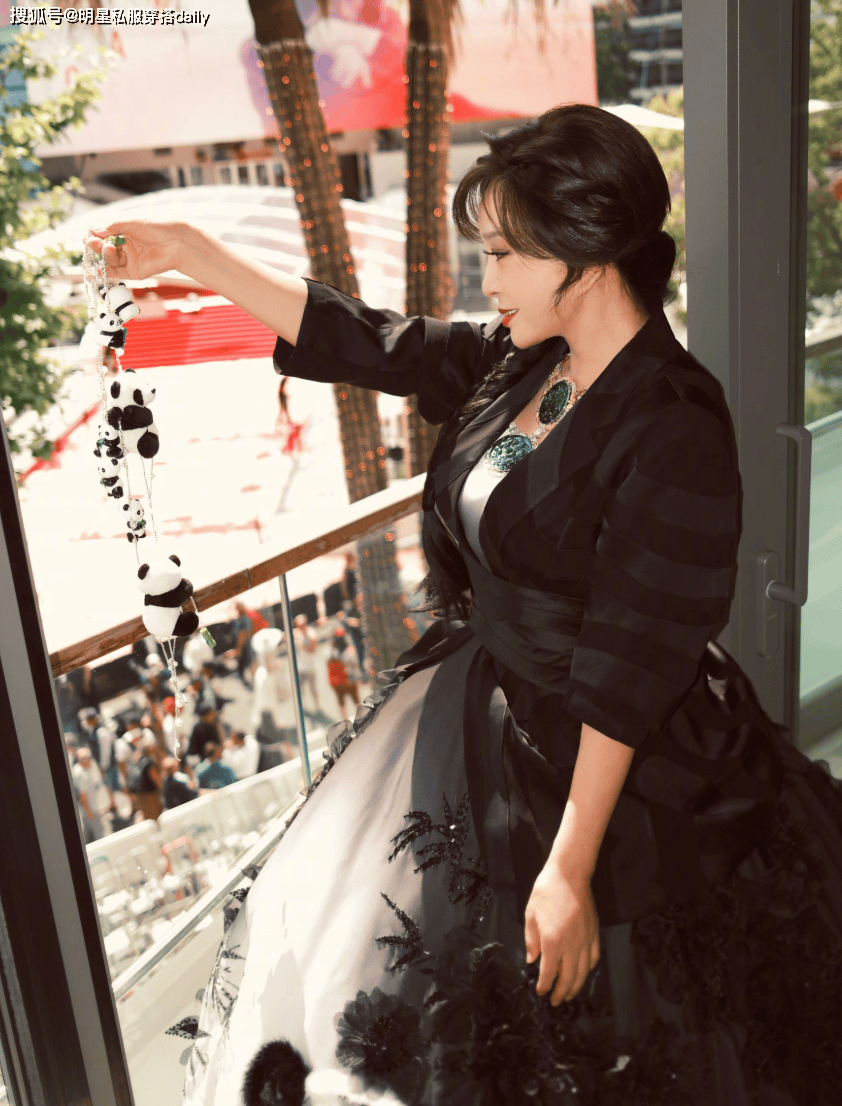 除此之外,她还在配饰上做了别具匠心的尝试。她手持一枚熊猫玩偶挂链,这一小巧的点缀打破了传统刺绣与服饰的单一形式,巧妙地把当代艺术元素融入到整套造型中,也呼应了本届戛纳对浮夸服饰的限制要求,同时传播了中式文化的现代魅力。